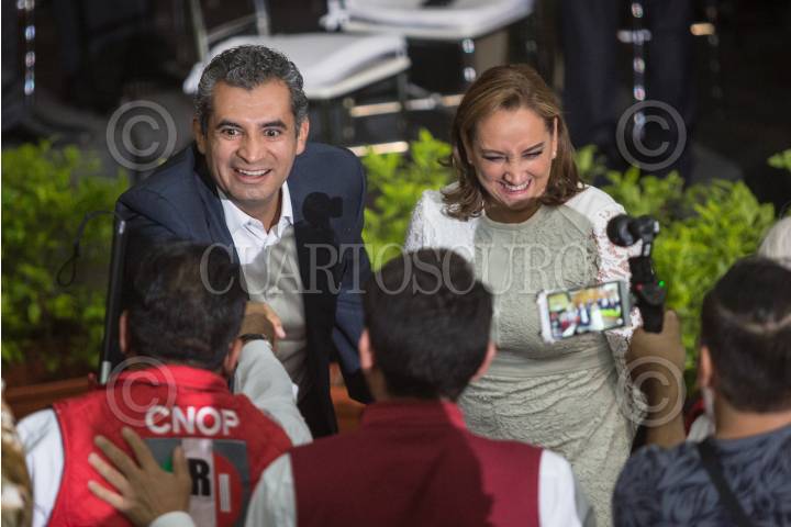 CIUDAD DE MÉXICO, 11OCTUBRE2017.- Enrique Ochoa Reza, presidente nacional del Partido de la Revolución Institucional, y Claudia Ruiz Massieu, secretaria general del partido, durante la XL Sesión Extraordinaria del Consejo Político en el CEN del PRI. FOTO: TERCERO DÍAZ /CUARTOSCURO.COM