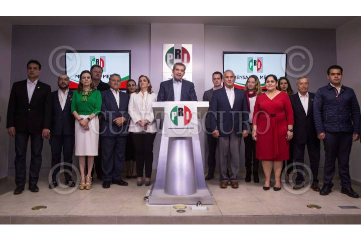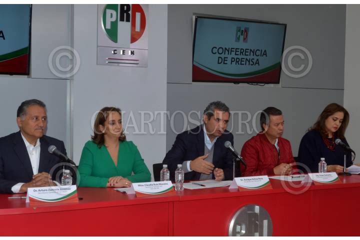 CIUDAD DE MÉXICO, 22DICIEMBRE2017.- Arturo Zamora, Claudia Ruiz Massieu, Enrique Ochoa Reza, César Cámacho, y Ana Lilia Herrera, durante la conferencia de prensa que ofrecieron en el CEN nacional del partido. FOTO: ARMANDO MONROY /CUARTOSCURO.COM