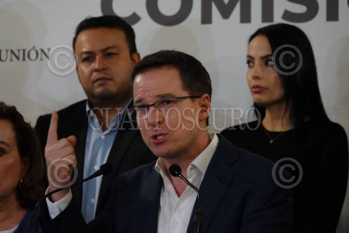 CIUDAD DE MÉXICO, 27JUNIO2025.- La bancada del Partido Acción Nacional (PAN) en el Senado de la República, encabezada por Ricardo Anaya, ofrecieron conferencia de prensa para dar a conocer detalles de los artículos y puntos modificados tras la discusión en la Comisión de Telecomunicaciones. FOTO: GALO CAÑAS/CUARTOSCURO.COM