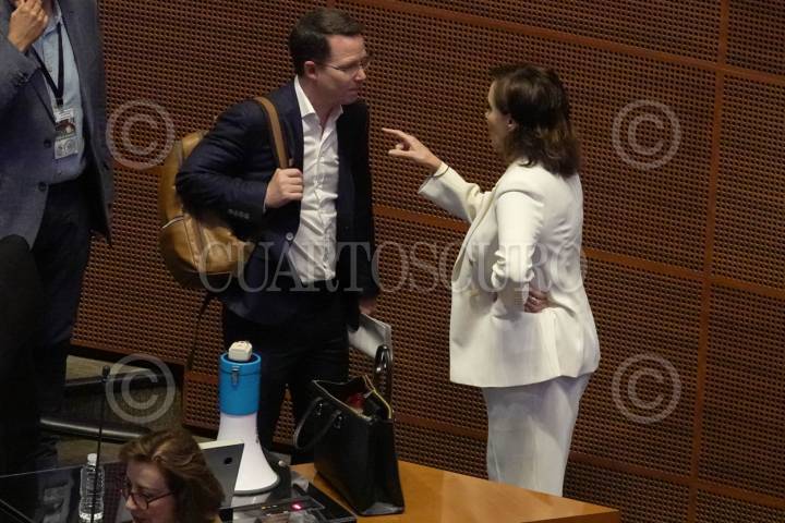 CIUDAD DE MÉXICO 28JUNIO2025.- Ricardo Anaya y Lilly Téllez, senadores por el Partido Acción Nacional, durante la sesión extraordinaria del Senado de la República FOTO:ROGELIO MORALES /CUARTOSCURO.COM