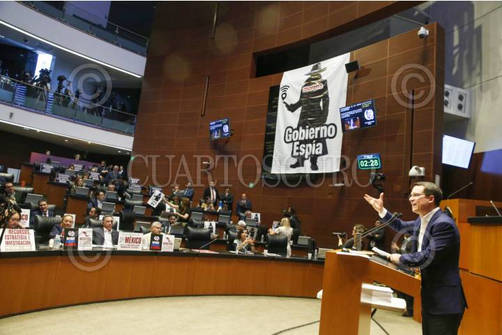 CIUDAD DE MÉXICO, 01JULIO2025.- Integrantes de la bancada del PAN se manifestaron en contra de la aprobación de la nueva Ley de Telecomunicaciones, los parlamentarios acusan que Morena quiere expiar a opositores y a ciudadanos, esto durante el último día del período extraordinario. En la imagen el senador Ricardo Anaya. FOTO: CUARTOSCURO.COM