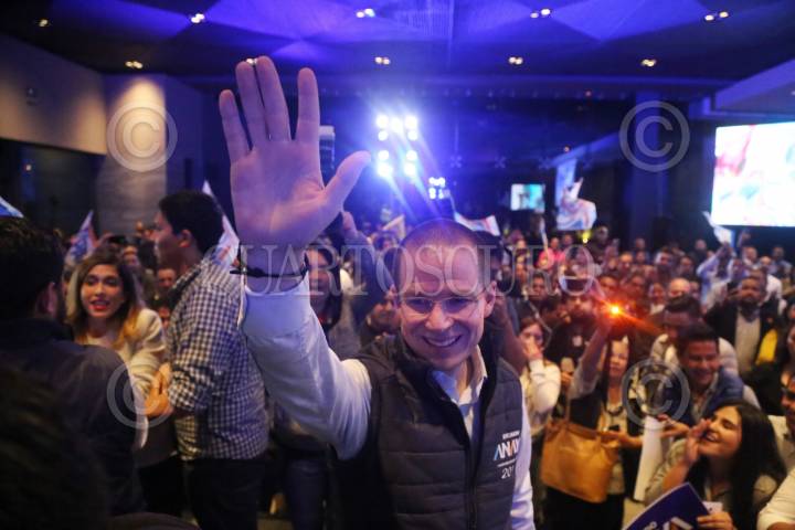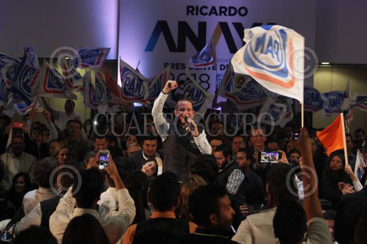 LEÓN, GUANAJUATO, 20DICIEMBRE2017.- Ricardo Anaya Cortés, precandidato presidencial de la Coalición Por México al Frente, realiazó un mitin proselitista ante militantes del PAN PRD y MC, como parte de su precampaña. FOTO: GUSTAVO BECERRA /CUARTOSCURO.OM