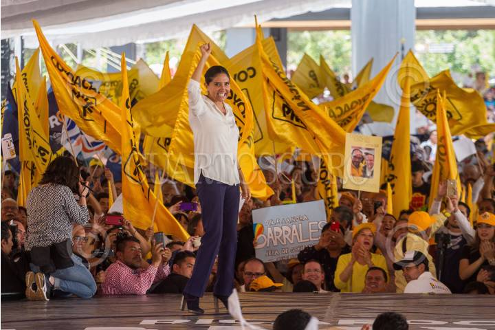 CIUDAD DE MÉXICO, 15MAYO2018.- Alejandra Barrales, candidata de la coalición Por México al Frente al Gobierno de la Ciudad de México, durante un mitin en la Alameda del Sur. FOTO: ISAAC ESQUIVEL /CUARTOSCURO.COM