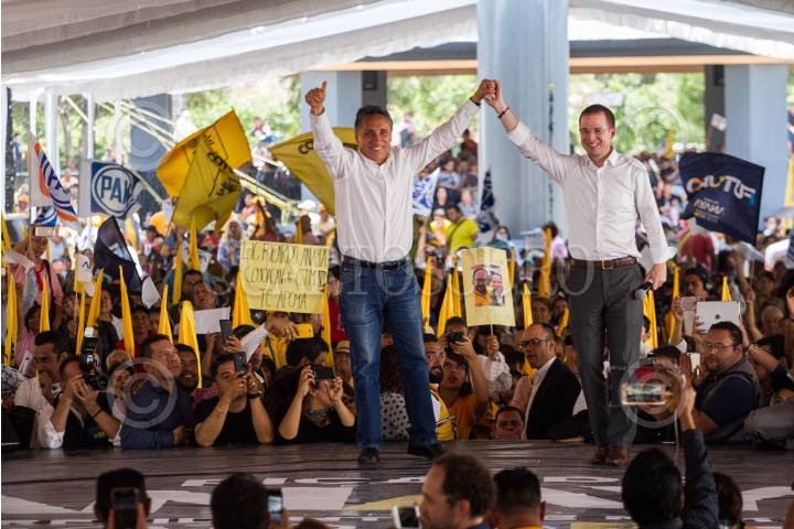 CIUDAD DE MÉXICO, 15MAYO2018.- Manuel Negrete y Ricardo Anaya Cortés, candidatos de la coalición Por México al Frente a la alcaldía de Coyoacán y la Presidencia de la República, encabezó un mitin en la Alameda del Sur. FOTO: ISAAC ESQUIVEL /CUARTOSCURO.COM