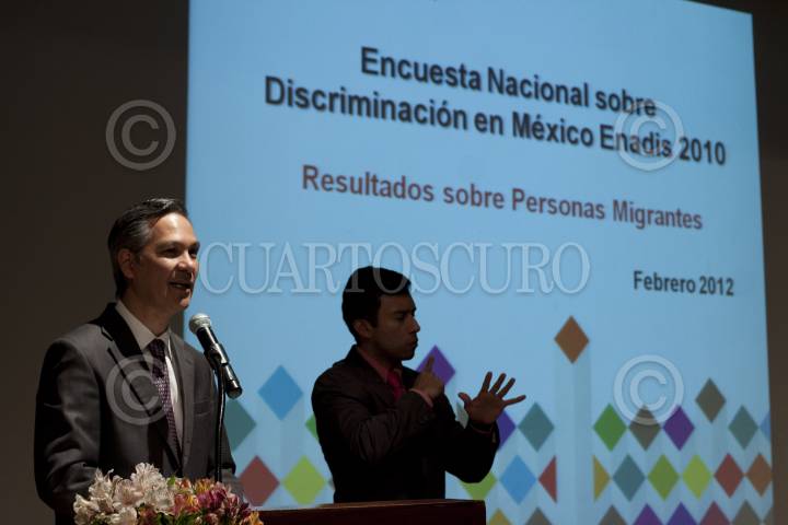 MÉXICO, D.F., 28FEBRERO2012.- Ricardo Bucio Mujica, presidente del Consejo Nacional para Prevenir la Discriminación, ofreció un informe sobre la migración en nuestro país en el marco de la glosa de la Encuesta Nacional sobre Discriminación en México Enadis 2010, en el Museo Franz Mayer. FOTO: MOISÉS PABLO /CUARTOSCURO.COM