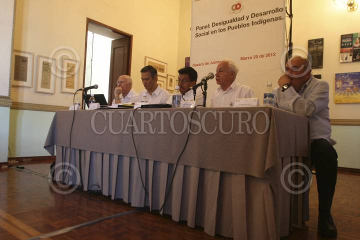 OAXACA, OAXACA, 20MARZO2012.- Panel Desigualdad y Desarrollo Social en los Pueblos Indígenas dentro de las actividades para la instalación de la Comisión de Desarrollo Social de los Pueblos Indígenas de la Conago. De izquierda a derecha, Fernando Cortés Cáceres, investigador emérito del Sistema Nacional de Investigadores, Ricardo Bucio Mújica, presidente del Consejo Nacional para Prevenir la Discriminación, Adelfo Regino Montes, secretario de Asuntos Indígenas de Oaxaca, Salomón Nahmad Sitton, consejero del Consejo Nacional de Evaluación de la Política de Desarrollo Social y Xavier Abreu Sierra, director General de la Comisión Nacional para el Desarrollo delos Pueblos Indígenas (CDI). FOTO: ARTURO PÉREZ ALFONSO /CUARTOSCURO.COM