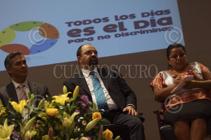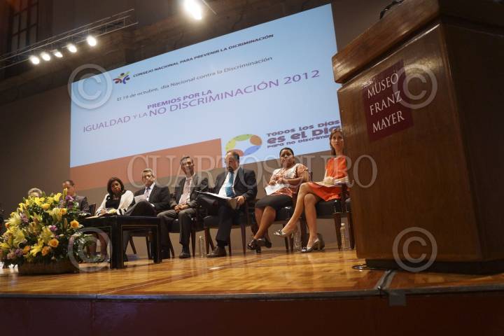 MÉXICO, D.F., 19OCTUBRE2012.- El Consejo Nacional para Prevenir la Discriminación entregó los premios por la Igualdad y la No Discriminación 2012 en el Museo Franz Mayer. La ceremonia estuvo encabezada por Ricardo Bucío Mujíca, presidente del Conapred y Emilio Álvarez Icaza, secretario ejecutivo de la Comisión Interamericana de Derechos Humanos. FOTO: PEDRO ANZA /CUARTOSCURO.COM