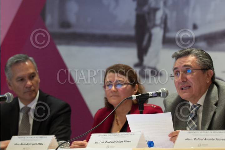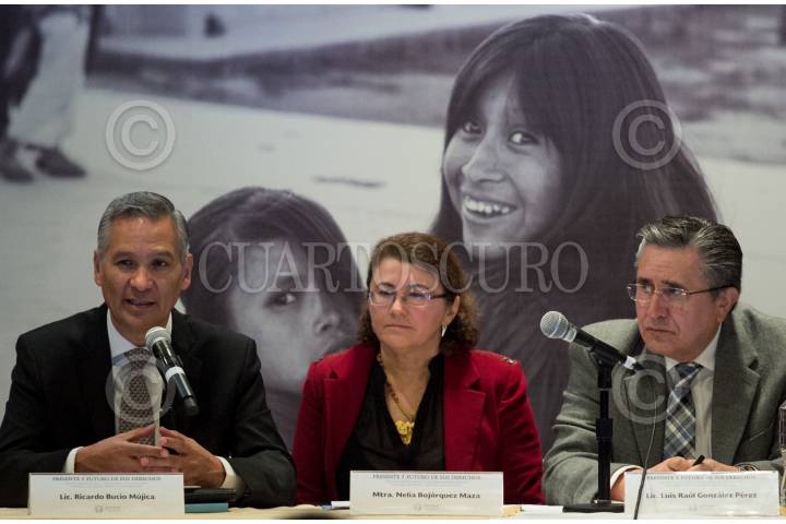 CIUDAD DE MÉXICO, 27SEPTIEMBRE2018.- Ricardo Bucio Mújica, Secretario Ejecutivo del Sistema Nacional de Protección Integral de Niñas, Niños y Adolescentes (SIPINNA), Nelia Bojórquez Maza, directora de Inclusión Ciudadana, y Luis Raúl González Perez, ombudsman de México, durante el encuentro nacional de Sistemas de Protección Integral de Niñas, Niños y Adolescentes. FOTO: GALO CAÑAS /CUARTOSCURO.COM