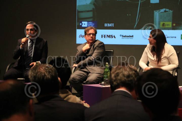 CIUDAD DE MÉXICO, 07DICIEMBRE2016.- Raúl Cortes, Director de EFE, Ricardo Cayuela Gally, director editorial de Penguin Random House México y Beatríz Fener, durante la presentación del libro libro "El testigo y su mirada", realizado por la agencia EFE en el marco de su 50 aniversario en México, FOTO: SAÚL LÓPEZ /CUARTOSCURO.COM