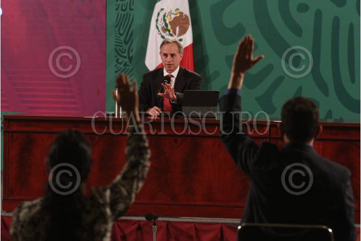 Hugo López-Gatell, durante la ronda de preguntas y respuestas.