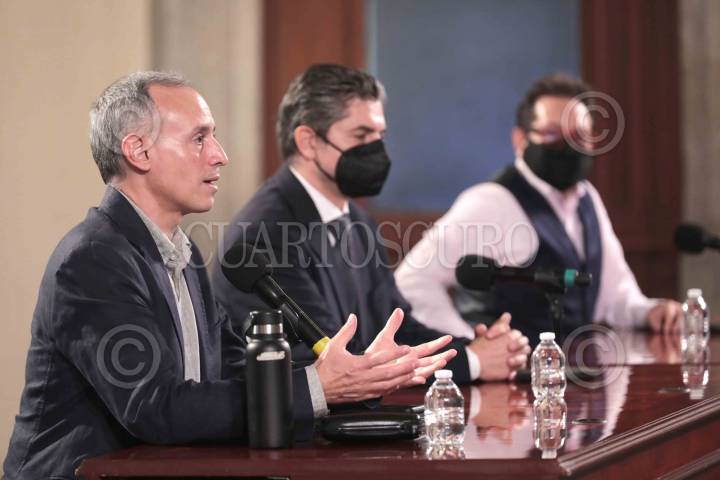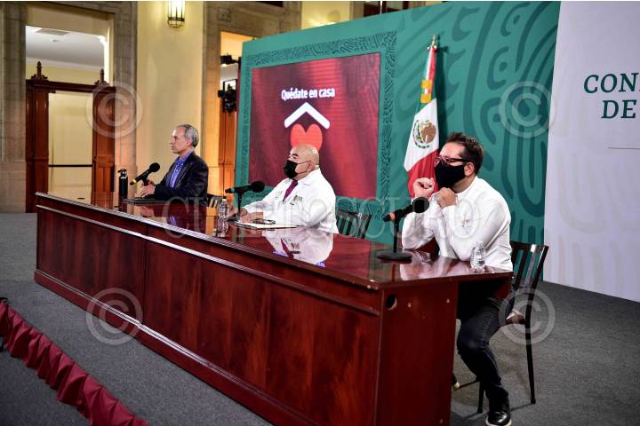 Conferencia-informe diario sobre coronavirus COVID-19 en México en el Salón Tesorería de Palacio Nacional, presidida por Hugo López-Gatell Ramírez, subsecretario de Prevención y Promoción de la Salud; Juan Carlos Márquez Heine, Secretario de Salud del Estado de Oaxaca y Ricardo Cortés Alcalá, director general de Promoción de la Salud.