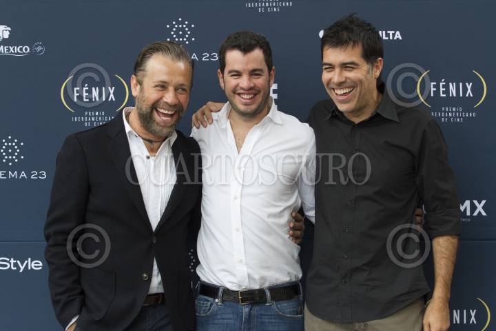 MÉXICO, D.F., 18AGOSTO2015.- El actor Juan Manuel Bernal, Rodrigo Peñafiel, presidente y fundador de Cinema 23 y Ricardo Giraldo, director de Cinema 23, durante la presentación de la segunda edición del Premio Iberoamericano de Cine Fénix, en el vestíbulo del Auditorio Nacional. FOTO: MOISÉS PABLO /CUARTOSCURO.COM