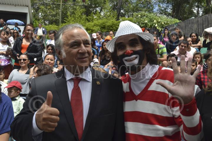 MÉXICO, D.F., 13AGOSTO2015.- Al develar la estatua del artista Ricardo González, mejor conocido como “Cepillín”, el Secretario de Turismo de la CDMX, Miguel Torruco Marqués, señaló que este monumento será punto de referencia obligado para la foto del recuerdo en el parque temático de “Six Flags”. Reunidos en el Paseo de las Luminarias de este parque, el funcionario señaló que este es un evento muy especial y emotivo: la develación de la estatua con que se rinde homenaje en vida a uno de los artistas más queridos por los niños de nuestro país y de América Latina; al payasito de la tele que a lo largo de sus 45 años de trayectoria profesional ha hecho reír a millones de pequeños. FOTO: ST /CUARTOSCURO.COM