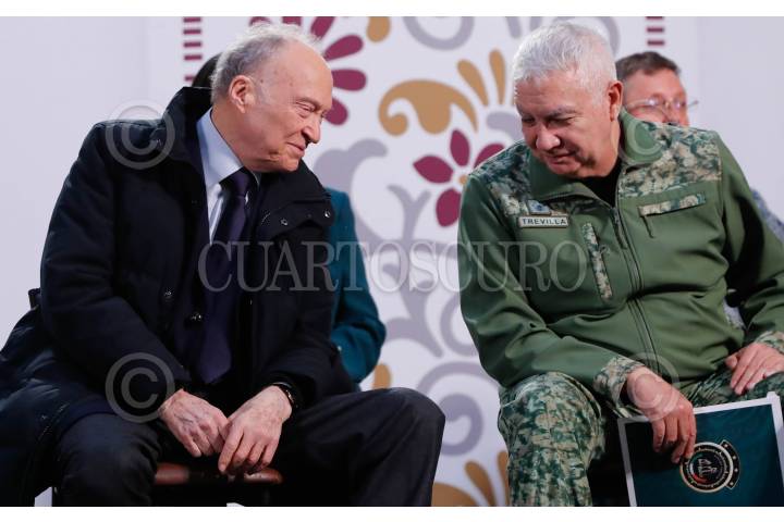 CIUDAD DE MÉXICO, 10JUNIO2025.- Ricardo Trevilla Trejo, secretario de la Defensa Nacional, responde a los cuestionamientos sobre la irrupción del ejército en el Multiforo Alicia el pasado 31 de mayo durante el concierto de Fermín Muguruza, el general secretario declaró que ya se tomaron acciones del corte militar y que partir de ahora no incurrirán en este tipo de operativos salvo que exista un orden judicial que lo solicite, afirmando que Guardia Nacional tomará control de estar acciones. Lo anterior, durante la conferencia “Mañanera del Pueblo” en la que se presentó el informe de Seguridad. FOTO: GALO CAÑAS/CUARTOSCURO.COM