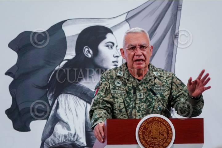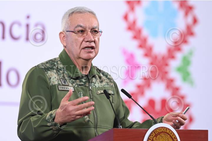 CIUDAD DE MÉXICO, 17DICIEMBRE2024.- Ricardo Trevilla, secretario de la Defensa Nacional, participó en la conferencia “Mañanera del Pueblo” en la que se presentó el informe quincenal en materia de seguridad. FOTO: GALO CAÑAS/CUARTOSCURO.COM