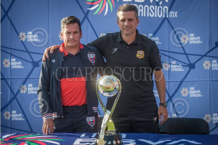 Mario García, director técnico del Atlante, y Ricardo Valiño, director técnico del Atlético Morelia, durante el día de medios de la LIGA BBVA Expansión MX en el Estadio Ciudad de los Deportes previo al partido de ida de la copa “Campeón de Campeones”.