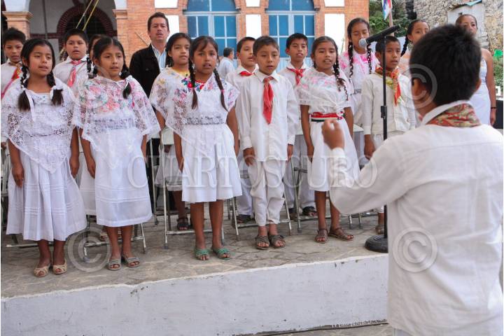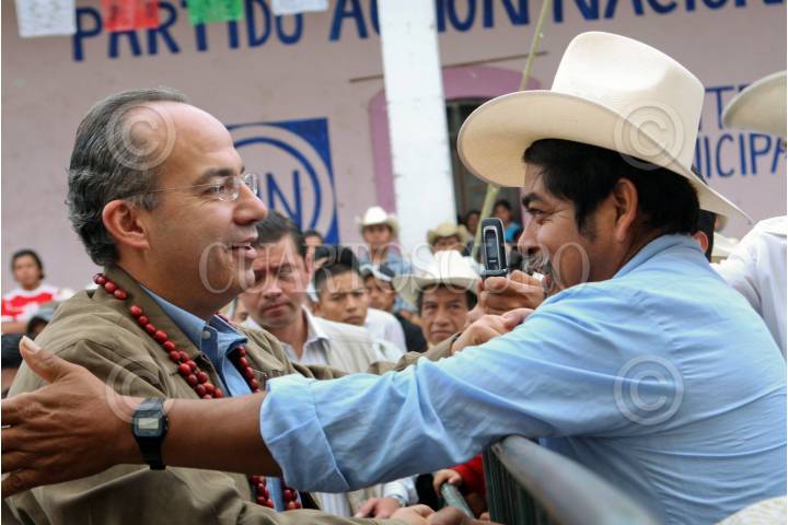 HUEYTLALPAN, PUEBLA, 12NOVIEMBRE2008.- El Presidente de la Republica Felipe Calderón Hinojosa durante la inauguración del camino Olintla Cuatro Caminos que se llevo a cabo en dicha entidad. FOTO: ALFREDO GUERRERO/CUARTOSCURO.COM