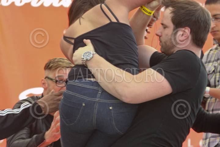 MÉXICO, D.F., 05ABRIL2011.- Un guardia de seguridad retira a una fanática después de tratar de saltar sobre el cantante puertoriqueño Ricky Martin durante la firma de autógrafos que realizo ante cientos de fans en una plaza al sur de la ciudad. FOTO: RODOLFO ANGULO/CUARTOSCURO.COM