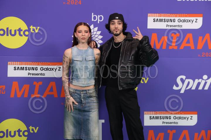 CIUDAD DE MÉXICO, 11JULIO2024. Young Miko y Ricky Limón durante la alfombra verde de la entrega de premios MTV MIAW 2024, en el Pepsi Center. FOTO: EDGAR NEGRETE LIRA/CUARTOSCURO.COM