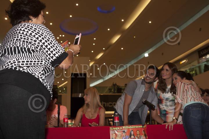 VILLAHERMOSA, TABASCO, 02JUNIO2014.- Integrantes de la obra teatral Que Rico Mambo, convivieron con sus fans en una firma de autógrafo y fotografías que tuvo lugar en la plaza Altabrisas. Los artistas que se dieron cita y prendieron el ambiente para deleite de los tabasqueños fueron Lourdes Mungia, Olivia Collins, Cynthia Rodríguez, Maribel Fernandez La Pelangocha, Gaby Carrillo, Agustin Arguello y Luis Fernando de la Peña. FOTO: MARCO POLO GUZMÁN HERNÁNDEZ/CUARTOSCURO.COM