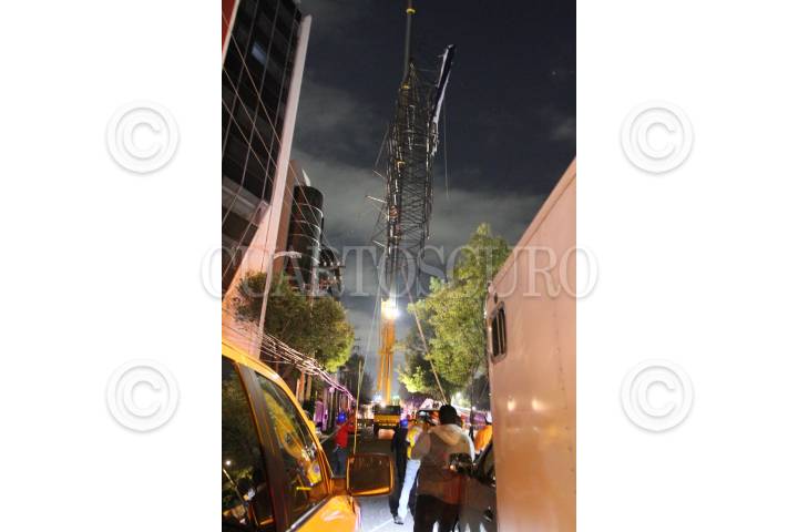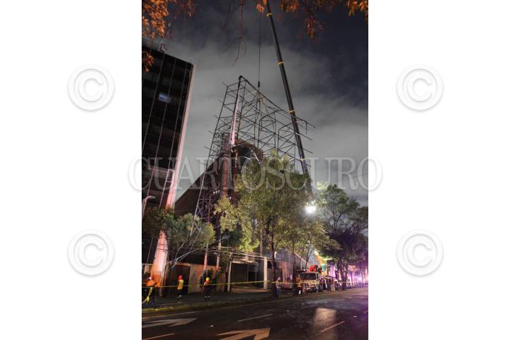 Por los riesgos que representaba a transeúntes, vecinos y conductores, fue retirado un anuncio espectacular de un edifico, con un peso aproximado a las 10 toneladas de peso.