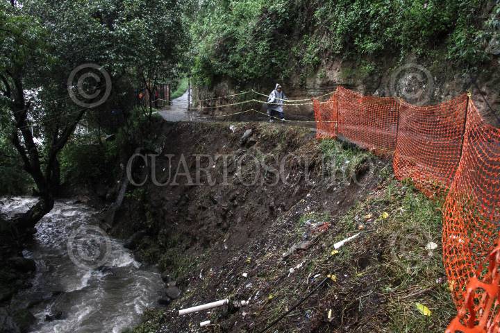 Crecimiento del Río Magdalena por lluvias contribuyen al deslave e tierra en la Magdalena Contreras.