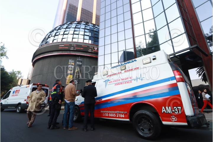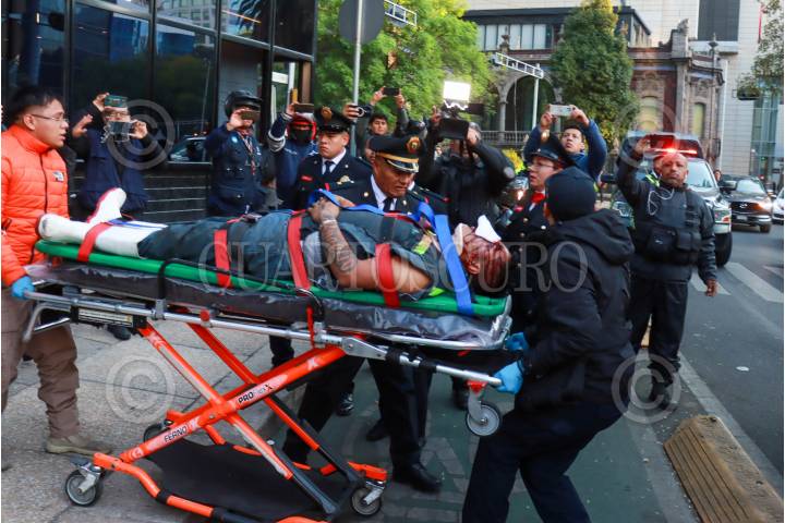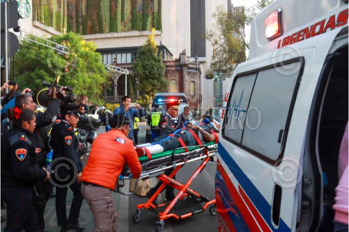CIUDAD DE MÉXICO, 08ENERO2025.- Un trabajador resultó gravemente herido tras caer de varios pisos cuando limpiaba vidrios en el domo de la Bolsa Mexicana de Valores (BMV). El afectado fue trasladado a un hospital. FOTO: ROGELIO MORALES/CUARTOSCURO.COM