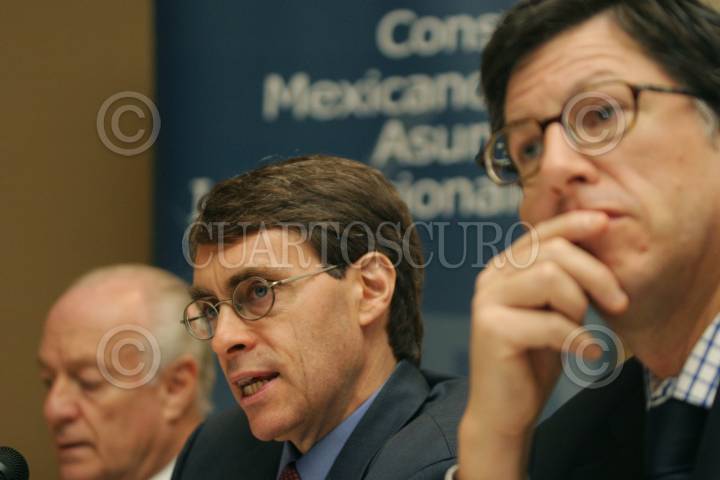 MÉXICO D.F. 17MAYO2006.- Andrés Rozental, ex subsecretario de Relaciones Exteriores, Ken Roth y José Miguel Vivanco, integrantes de Human Rights Watch, durante conferencia en el club industrial. FOTO: Diego Gallegos/CUARTOSCURO.COM