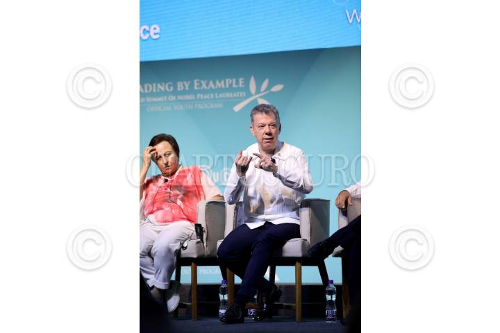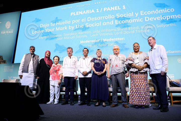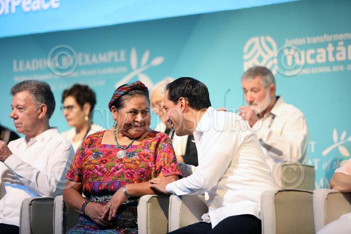 MÉRIDA, YUCATÁN, 19SEPTIEMBRE2019.- El Centro Internacional de Congresos (CIC) alberga desde hoy la XVII Cumbre de Premios Nobel de la Paz, considerada una de las más importantes al reunirse en ella 30 laureados. En la inauguración pronunciaron mensajes los nobeles Rigoberta Menchú Tum, de Guatemala, y Juan Manuel Santos, de Colombia, el gobernador del estado Mauricio Vila Dosal fue el anfitrión. FOTO: FRANCISCO BALDERAS /CUARTOCURO.COM