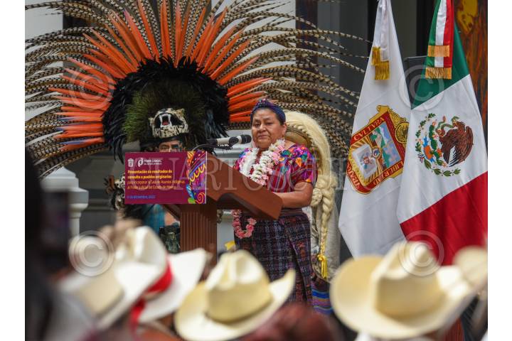 Rigoberta Menchú, Premio Nobel de la Paz acudió a la presentación de resultados de la consulta a pueblos originarios para incorporar la Sala de Asuntos Indígenas en el PJEM.
