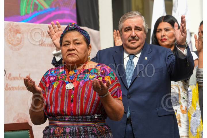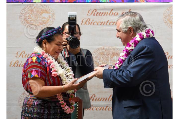 Rigoberta Menchú Premio Nobel de la Paz recibió un reconocimiento por su activismo y defensa de la paz, justicia social y derechos humanos de los pueblos indígenas.