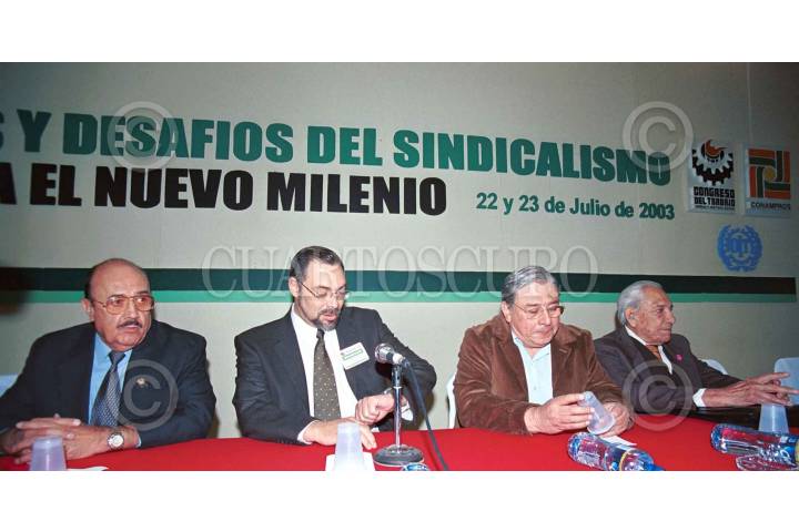 El Congreso del Trabajo y CONAMPROS, inagurarón la serie de conferencias de ¨Retos y Desafios del Sindicalismo para el Nuevo Milenio¨, estuvieron presentes, Rigoberto Ochoa, José Antonio Souberville Fernández, José Luis Mondragón, Mariano Suárez García. FOTO: Moisés Pablo/CUARTOSCURO.COM