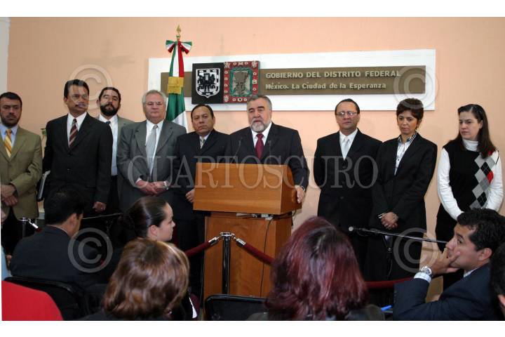 MEXIOC, D.F. 03AGOSTO2005.- Al centro, Alejandro Encinas, jefe de Gobierno capitalino presentó a su nuevo equipo de trabajo, durante la primera conferencia que ofrece con el nuevo cargo, entre ellos se encuentran Jesús Zambrano, Ricardo Ruiz, Rocio González y Yari Hernández. FOTO: Sandra Perdomo/CUARTOSCURO.COM