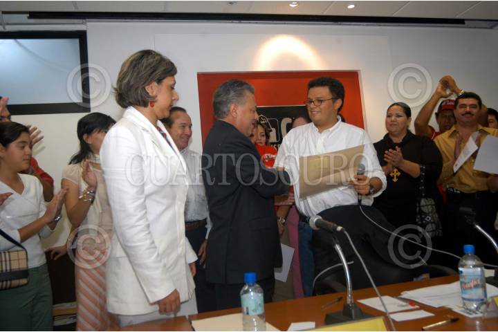 CULIACAN, SINALOA, 22NOVIEMBRE2004.- El Presidente del Consejo Estatal Electoral de Sinaloa, Rigoberto Ocampo Alcántar, entregó la constancia de gobernador electo al priista, Jesús Aguilar Padilla. FOTO: Cortesia/El Debate de Culiacán