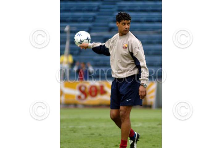 Frank Rijkaard entrenador del Barcelona, dirige los trabajos de praparación de su equipo en el estadio Azul, previo a su encuentro conel América. FOTO: Nelly Salas/CUARTOSCURO.COM
