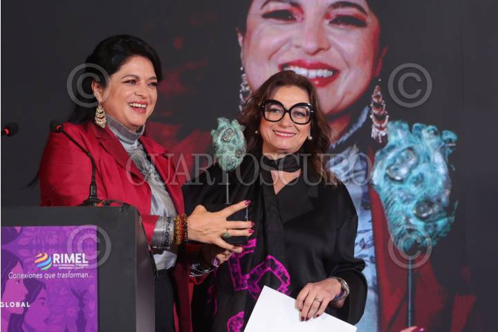 CIUDAD DE MÉXICO, 19JUNIO2025. Alejandra Frausto, secretaria de Turismo de la CDMX recibe un reconocimiento por parte de Magdalena Nicolini, presidenta de Rimel México durante la inauguración de la II Cumbre Empresarial Global Rimel 2025, en un hotel de Reforma. FOTO: EDGAR NEGRETE LIRA/CUARTOSCURO.COM