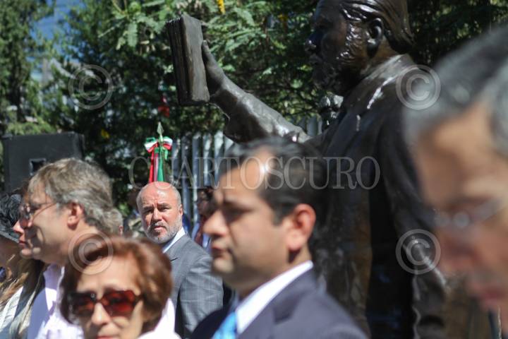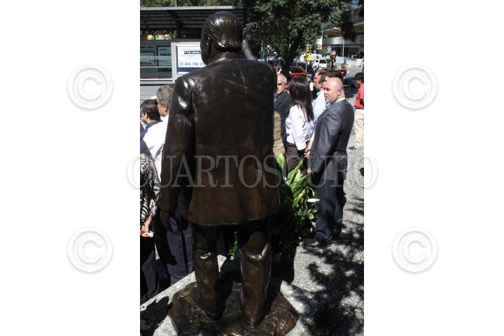 MÉXICO, D.F., 01OCTUBRE2010.- Manuel J. Clouthier Carrillo, diputado federal y presidente del consejo editorial del Noroeste, observa a la estatua de su padre Manuel Clouthier del Rincón , destacado dirigente panista, durante la conmemoración del XXI aniversario luctuoso del también llamado "Maquío" que se realizó el parque Vito Alessio. FOTO: MOISÉS PABLO/CUARTOSCURO.COM
