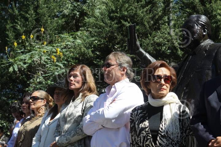 MÉXICO, D.F., 01OCTUBRE2010.- Familiares de Manuel J. Clouthier del Rincón se dieron cita en el monumento del también llamado "Maquío" para rendirle homenaje en su XXI aniversario luctuoso. En la imagen se aprecian Manuel J. Clouthier Pérez, nieto y sus hijos Manuel, Lorena, Rebeca, Lucía y Juan Pablo Clouthier Carrillo, además de su viuda Leticia Carrillo y como fondo el monumento del ilustre panista ubicado en el Parque Vito Alessio en Insurgentes Sur. FOTO: MOISÉS PABLO/CUARTOSCURO.COM