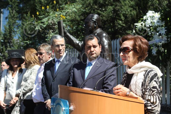 MÉXICO, D.F., 01OCTUBRE2010.- Leticia Carrillo, viuda del dirigente Manuel J. Cloutier del Rincón, encabezó el homenaje a "Maquío" quien cumplió XXI años de desaparecido. Éste se realizó en el monumento dedicado a el ilustre panista en el parque Vito Alessio en Insurgentes Sur. FOTO: MOISÉS PABLO/CUARTOSCURO.COM