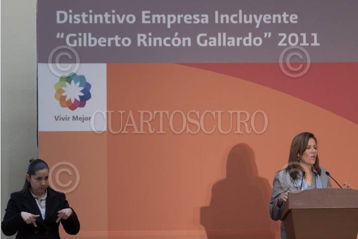 MÉXICO, D.F., 15MARZO2012.- Margarita Zavala, presidenta nacional del Sistema Nacional Desarrollo Integral de la Familia (DIF), acudió a la entrega del distintivo empresa incluyente "Gilberto Rincón Gallardo" en el Club de Industriales. FOTO: IVÁN STEPHENS /CUARTOSCURO.COM