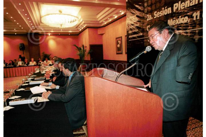 Gilberto Rincón Gallardo, presidente del Centro de Estudios para el Consejo Nacional de Equidad. Nació el 15 de mayo de 1939 en el Distrito Federal, estudió la Licenciatura en la Universidad Nacional Autónoma de México, en Derecho, es Presidente del Partido Democracia Social. Fue candidato a la Presidencia de la República de México por dicho partido en el 2000. Diputado Federal de 1991 a 1994, comisiones: Gobernación y Puntos Constitucionales, Relaciones Exteriores y Secretario de la del Distrito Federal. Diputado Federal de 1979 a 1982, comisiones: Gobernación y Puntos Constitucionales. Secretario de Educación Política del Secretario Electoral, del Partido Comunista Mexicano de 1963 a 1981. FOTO: Pedro Mera/CUARTOSCURO.COM