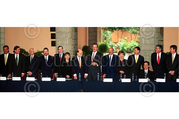 Esta mañana el presidente electo Vicente Fox, presentó ante los medios de información a los miembros de su gabinete soacial que entrará en funciones el próximo primero de diciembre. FOTO: Pedro Mera/CUARTOSCURO.COM