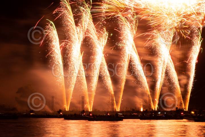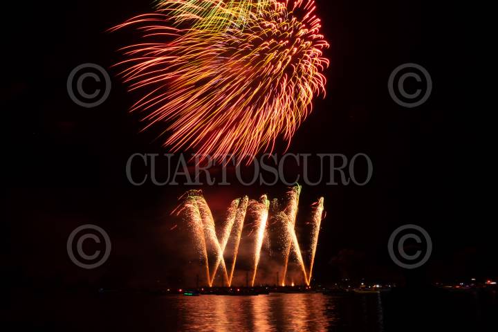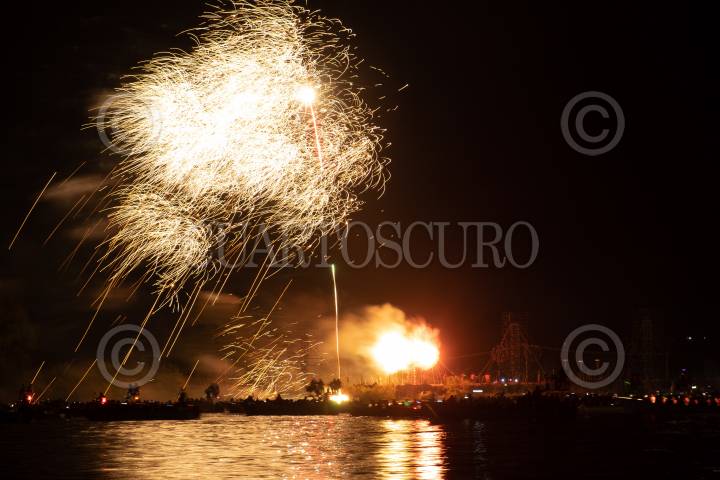 A orillas del Río Grijalva se reunieron personas para disfrutar del espectáculo pirotécnico que representa las batallas que se lidiaron en la región entre la comunidad chiapaneca y españoles en la época de la colonización.