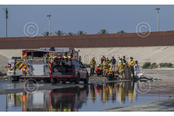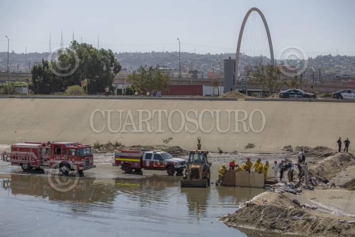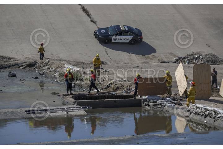 TIJUANA, BAJA CALIFORNIA, 14OCTUBRE2019.- Elementos del cuerpo de bomberos trabajaron en el rescate de un cuerpo humano localizado en el interior de la canalización Del Río Tijuana, a pocos metros del muro fronterizo que divide a México y Estados Unidos. De acuerdo a información extraoficial en el lugar fue localizada una pierna y se procedió con la búsqueda por la posibilidad de que existan más restos. Al lugar acudieron elementos de la Policía Municipal y de la Procuraduría General de Justicia del Estado. FOTO: OMAR MARTÍNEZ /CUARTOSCURO.COM