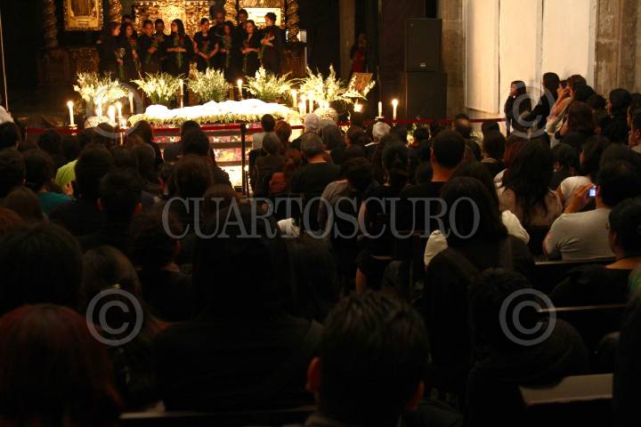 MÉXICO, D.F., 12MARZO2011.- La noche de hoy se realizó un homenaje de cuerpo presente de Rita Guerrero (Santa Sabina), Cantante y compositora, la cual murió el día de ayer a consecuencia de Cáncerde Mama. Ésto se realizó en el Colegio Claustro de Sorjuana. FOTO: MISAEL VALTIERRA/CUARTOSCURO.COM