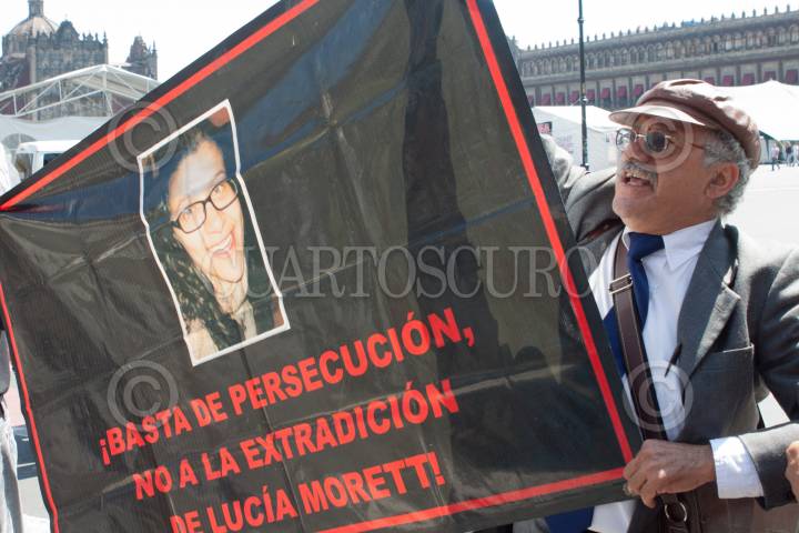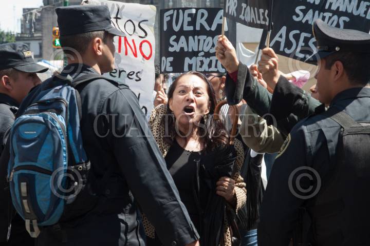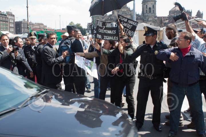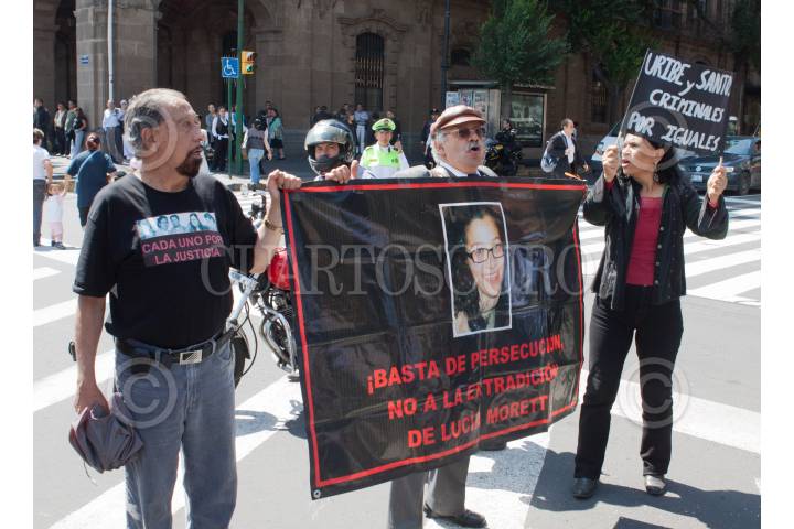 MÉXICO, D.F. 02AGOSTO2011.- Rita del Castillo, madre del estudiante Juan González del Castillo asesinado en Ecuador tras un bombardeo del gobierno colombiano a un campamento de las FARC, se manifestó afuera del Palacio de Gobierno, en donde el Presidente de Colombia Juan Manuel Santos recibió las llaves de la ciudad. FOTO: MOISÉS PABLO/CUARTOSCURO.COM