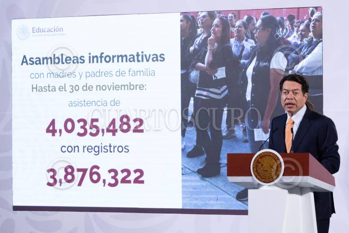CIUDAD DE MÉXICO, 02DICIEMBRE2024.- Mario Delgado, titular de la SEP, señaló que ya está por iniciar la entrega de la Beca Rita Cetina para estudiantes de secundaria, durante la mañanera del pueblo. FOTO: MOISÉS PABLO/CUARTOSCURO.COM