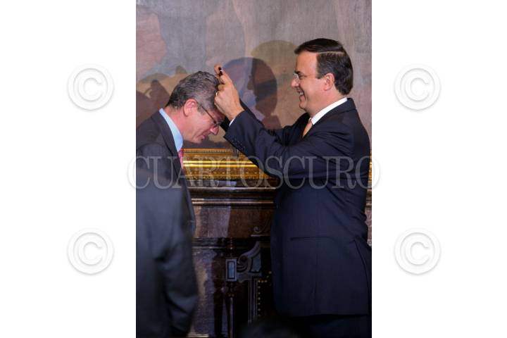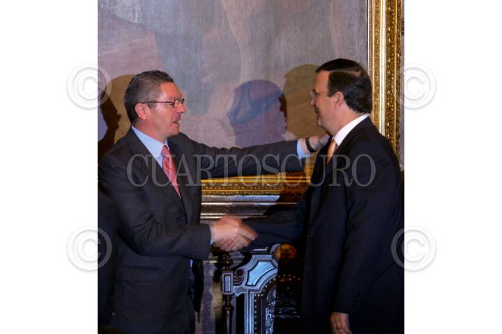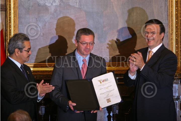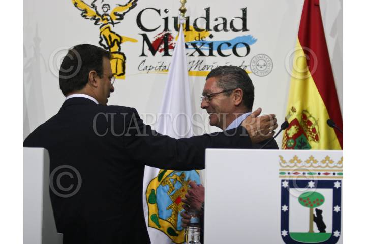 MÉXICO, D.F., 19MAYO2009.-El Alcalde de Madrid Alberto Ruiz Gallardón y el jefe de Gobierno del Distrito Federal, Marcelo Ebrard, durante la entrega de las llaves de la ciudad al madatario Español durante una ceremonia en el salón de cabildos del Antiguo Palacio del Ayuntamiento. FOTO: RICARDO CASTELAN/CUARTOSCURO.COM