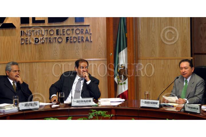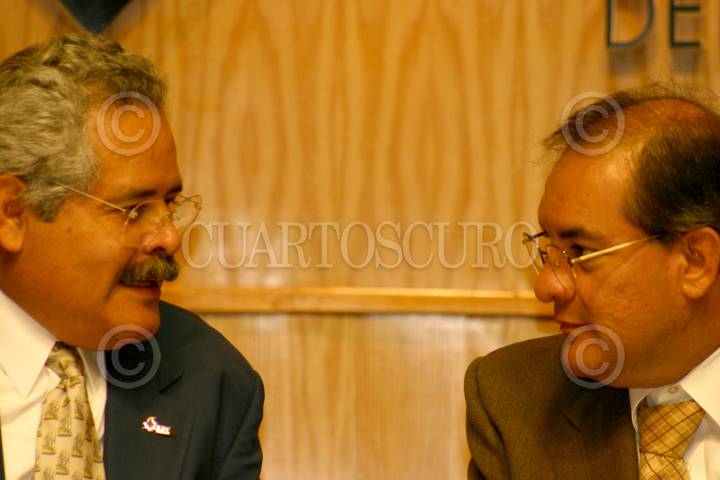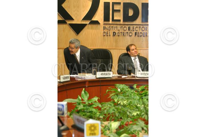 MEXICO D.F. 30SEPTIEMBRE2005.- Javier Santiago Castillo, consejero presidente y Adolfo Riva Palacio Neri Secretario ejecutivo del instituto electoral del Distrito Federal durante la sesión extraordinaria. FOTO: Leonardo Casas/CUARTOSCURO.COM
