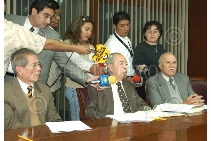 México, D.F. 19 AGOSTO 2004.- Javier Santiago Castillo, consejero presidente, Adolfo Riva Palacio Neri, secretario ejecutivo del IEDF y Eduardo Huchim May, consejero electoral y presidente de la comisión de Fiscalización durante la sesión extraordinaria donde se trato el presuntó rebase de tope de gastos de campaña en que incurrió el PAN en 2000. FOTO: Sandra Perdomo/CUARTOSCURO.COM